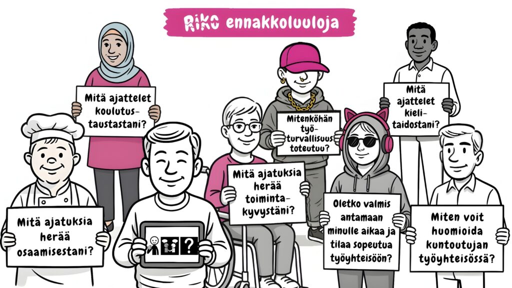 Kuva 1. Riko ennakkoluuloja. Hankkeessa tuotettu kuva Kiipulan Opiston moninaisuuslähettilään esitteeseen.