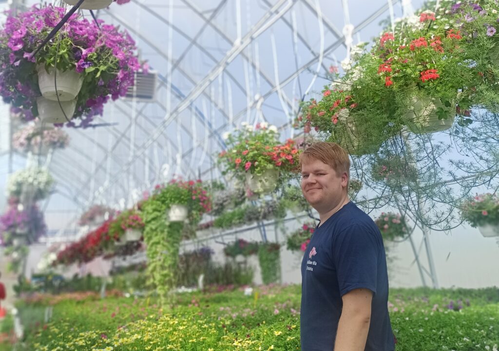 Artikkelikuva: Aleksi Hämäläinen uudessa kasvihuoneessa. Kuva: Anu Nuutinen