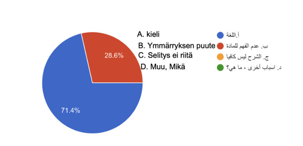 Kuva 1. Kouzi, A. 2020b. Kysely opettajille: Onko maahanmuuttajaoppilaiden opettamisessa haasteita? Jos on, mitkä ovat tavallisimman vaikeudet?
